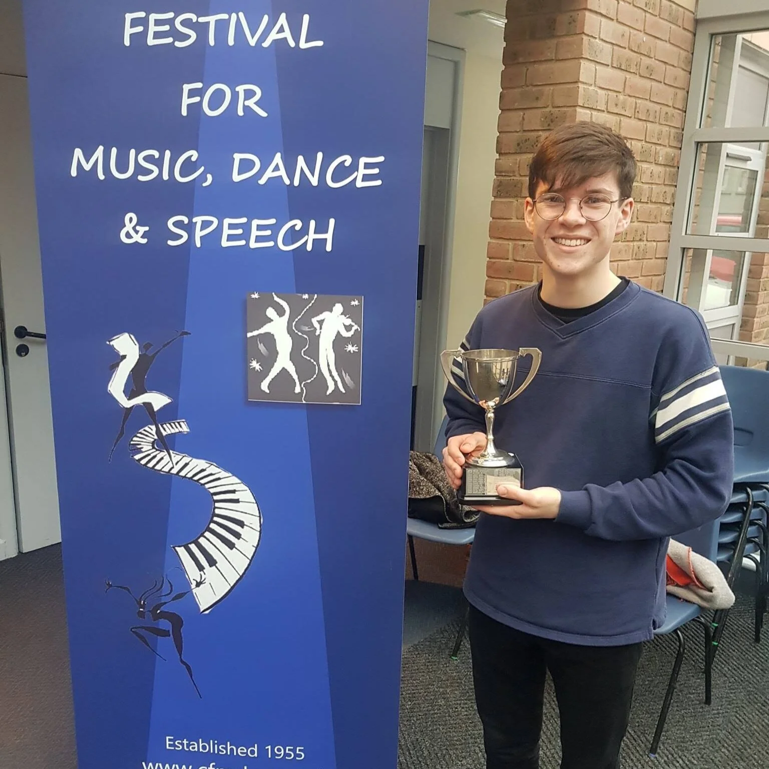 Jamie, who is preparing for his Grade 8 at the end of the year and performed two of his pieces: a Scaratti sonata and a Chopin nocturne. He was awarded first place in the Piano Higher class, winning the Mary Begg Challenge Cup.